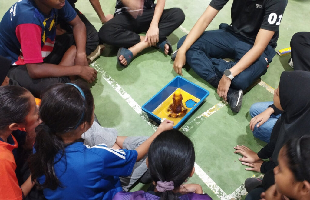 Program diteruskan dengan satu aktiviti eksplorasi iaitu eksperimen gunung berapi. Para peserta dibahagikan kepada lima kumpulan yang diketuai fasilitator. Menggunakan bahan mudah seperti tanah liat, cuka dan serbuk penaik, setiap kumpulan membina gunung berapi mini dan menyaksikan letusan yang terhasil daripada tindak balas kimia. Aktiviti ini bukan sahaja mendidik, malah memupuk semangat kerjasama dan rasa ingin tahu dalam kalangan kanak-kanak.