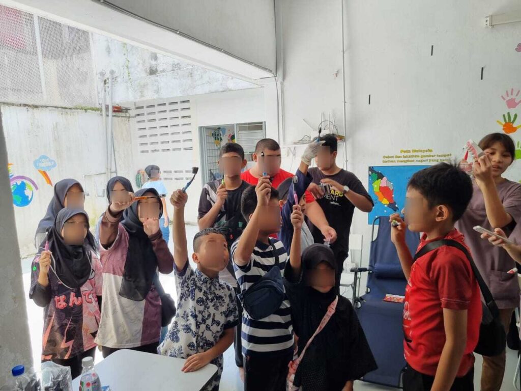 Due to their undocumented status, these BJCK children had limited access to essential health services, including dental care. Undocumented children in Malaysia often faced numerous barriers such as poverty, lack of education, and limited access to healthcare, making them particularly susceptible to health problems. This project addressed the pressing dental health needs of this vulnerable population, long overlooked in public health policies.