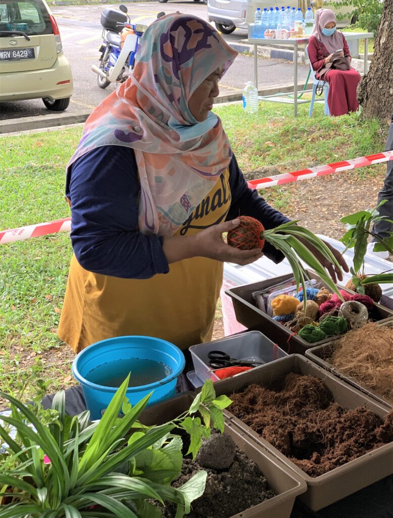 “Saya teruja kerana berpeluang menambah ilmu bagi memastikan kebun bandar kami menghasilkan hasil yang baik dan boleh dikongsi bersama kelak. Saya juga berpeluang belajar teknik menghasilkan kokedama yang sangat cantik untuk hiasan rumah,” kata Peter Teoh, salah seorang penduduk yang menjadi peserta program UM-SGC.
