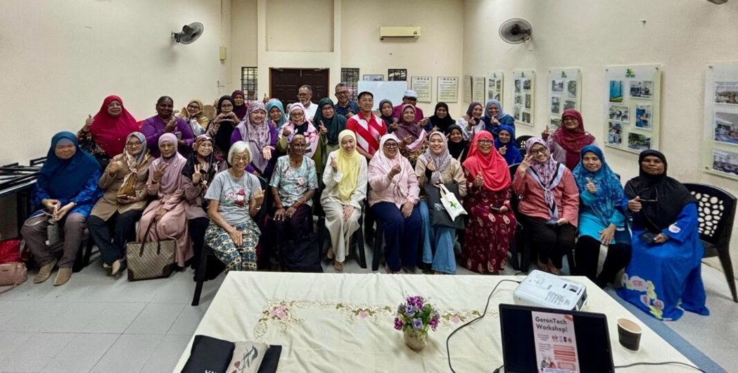 The session also featured an invited speaker in digital marketing and was supported by PAWE Lembah Pantai chairperson Hajah Rosita Hj Rahim. The workshop is part of a research project titled โ€œEmpowering Ageing in the Digital Economy: Community-Based โ€˜GeronTechโ€™ Exposure.โ€ GeronTech, short for gerontechnology, refers to the use of technology to support ageing and improve the lives of older persons. In this project, the focus is on strengthening economic participation and financial empowerment among older adults.